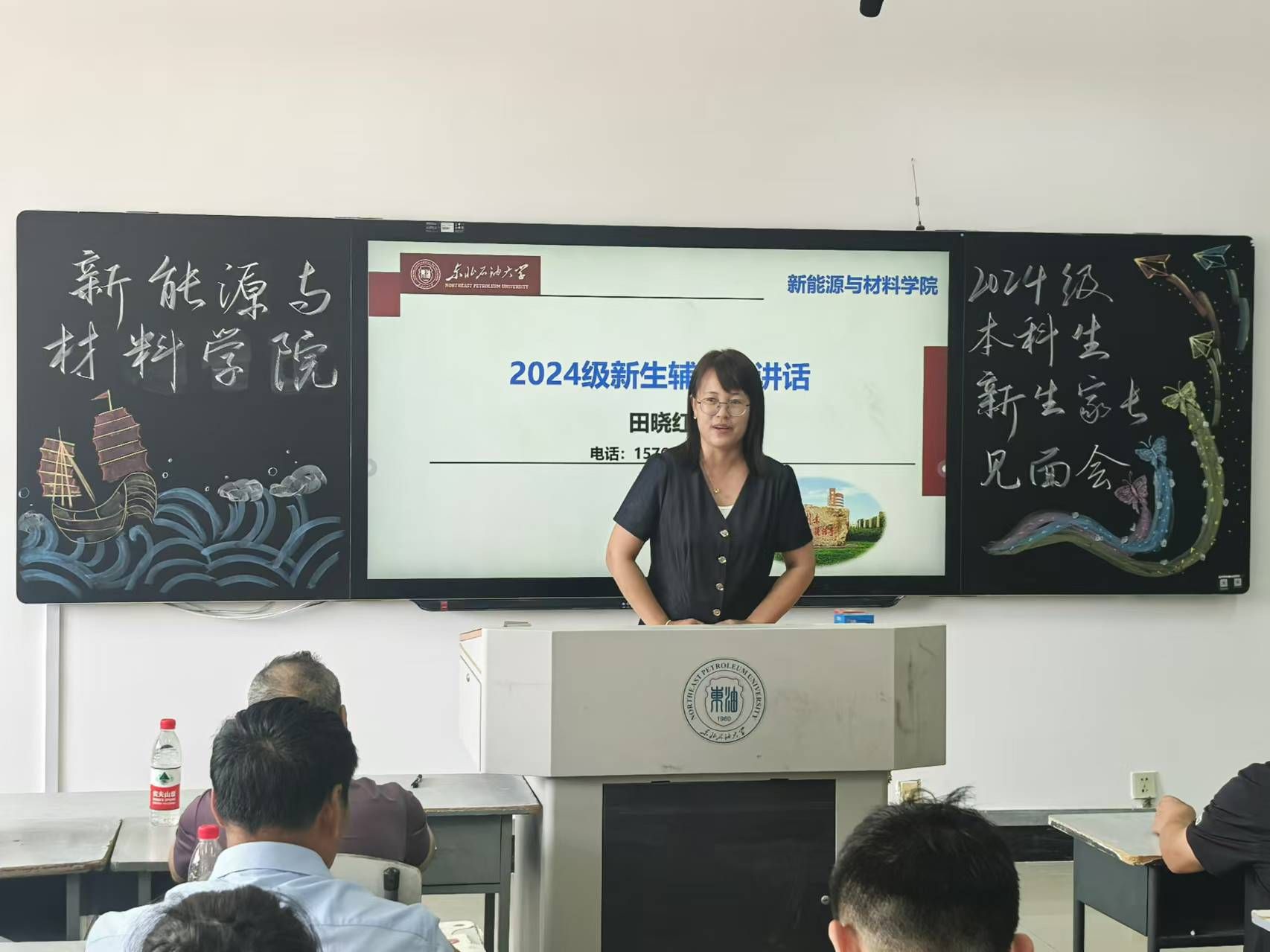 学院新生辅导员田晓红说明了辅导员在学生管理、思想教育、学业指导等方面的职责,表达了与家长们携手共育英才的美好愿景。