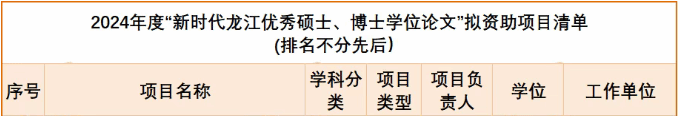 据悉,此次申报根据《“新时代龙江优秀硕士、博士学位论文”立项资助办法(试行)》文件的相关要求,经个人申报、单位推荐、省教育厅初审、专家通讯评审,拟资助项目100项,其中:重点项目29项,一般项目71项。