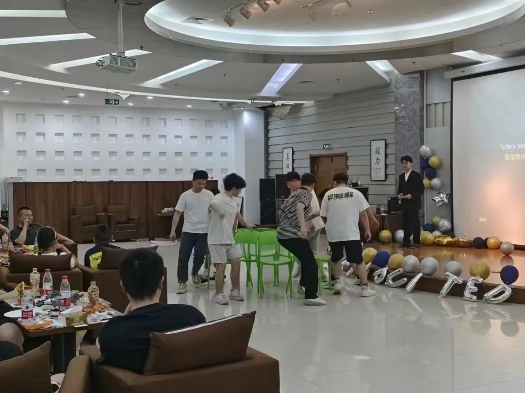 节目展示后,同学们玩起了击鼓传花、你画我猜、抢凳子、猜灯谜、同船共济等游戏。